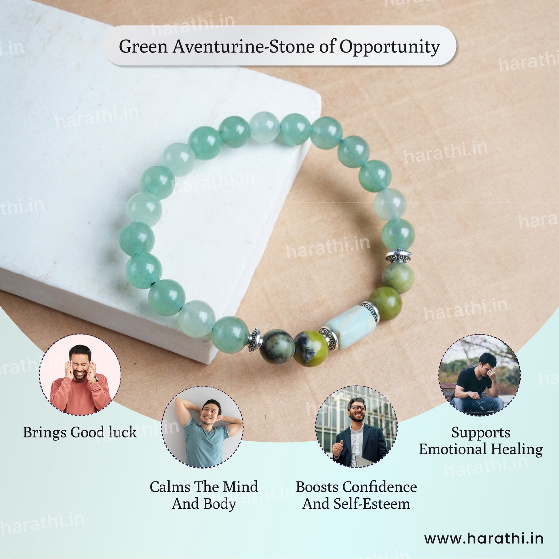 Green Aventurine is known as the "Stone of Opportunity" and love, encouraging success and growth. It brings abundance and growth in professional and personal areas of life. It helps calm emotions and is a heart chakra stone and brings luck in love as well.