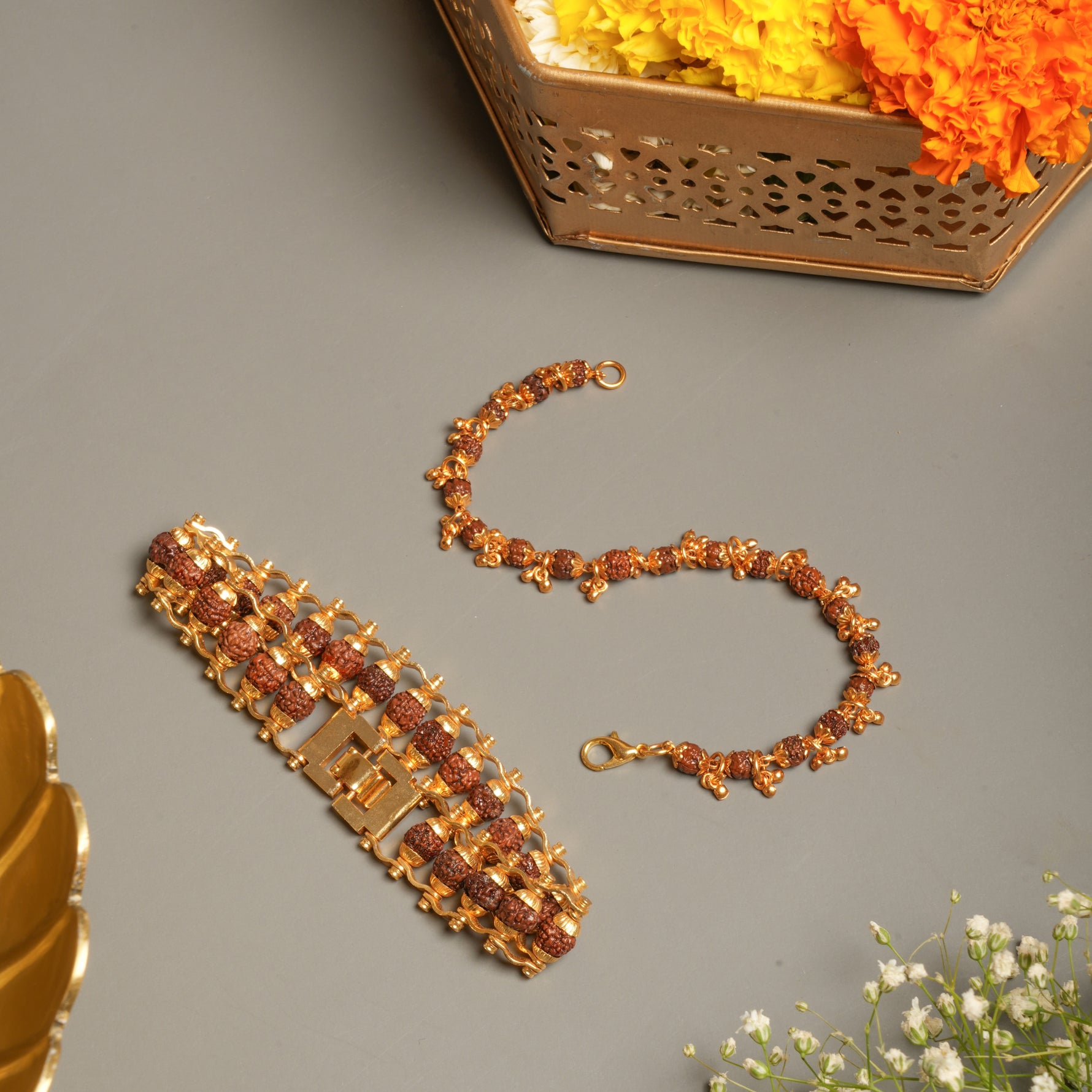 Gold Plated Rudraksha premium Bracelet Combo: